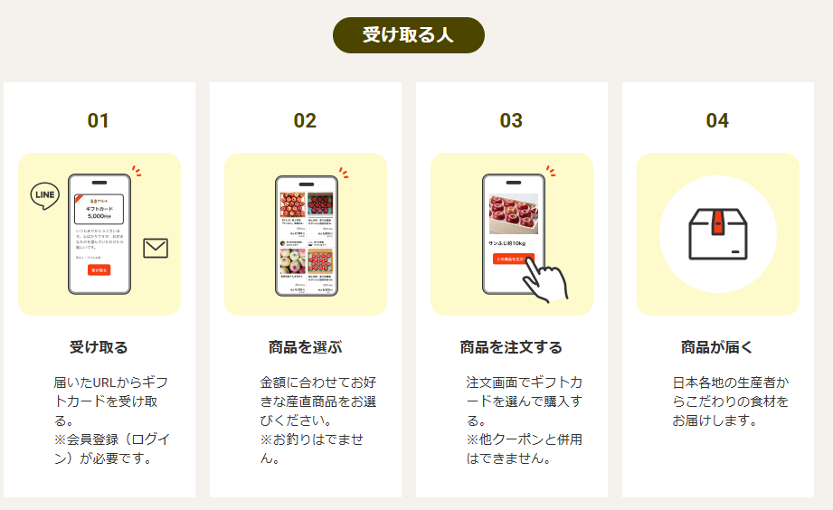 自分が「美味しい」と感じた食材を、相手にも楽しんでもらえる“体験型ギフト”として贈ることができます。